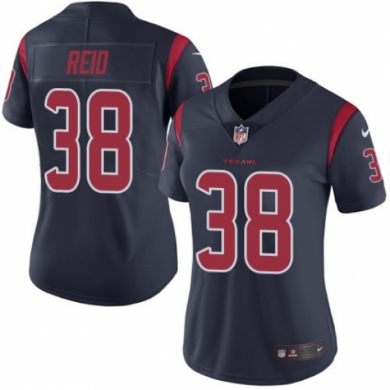 >Women's Nike Houston Texans #38 Justin Reid Limited Navy Blue Rush Vapor Untouchable NFL Jersey