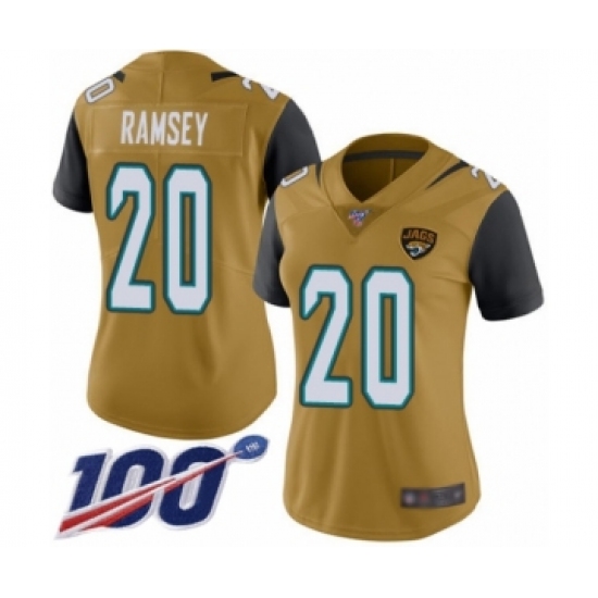 >Women's Nike Jacksonville Jaguars #20 Jalen Ramsey Limited Gold Rush Vapor Untouchable 100th Season NFL Jersey