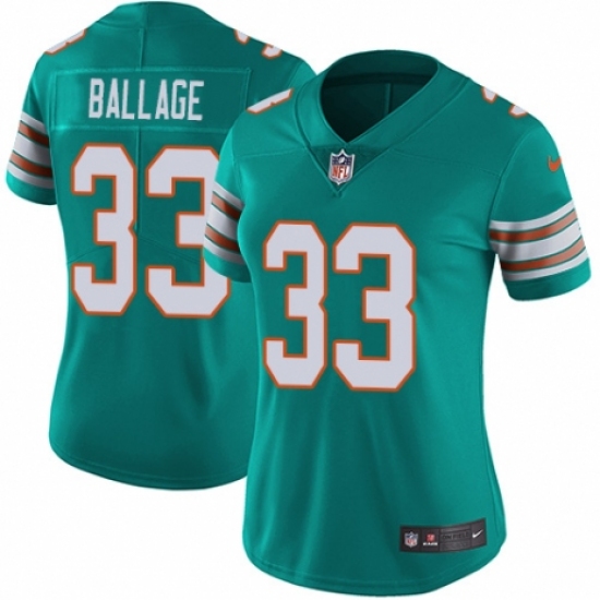 >Women's Nike Miami Dolphins #33 Kalen Ballage Aqua Green Alternate Vapor Untouchable Limited Player NFL Jersey