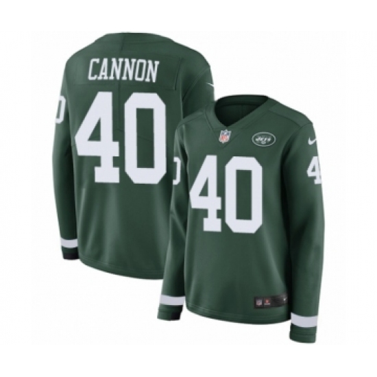 >Women's Nike New York Jets #40 Trenton Cannon Limited Green Therma Long Sleeve NFL Jersey