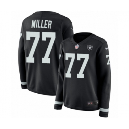 >Women's Nike Oakland Raiders #77 Kolton Miller Limited Black Therma Long Sleeve NFL Jersey