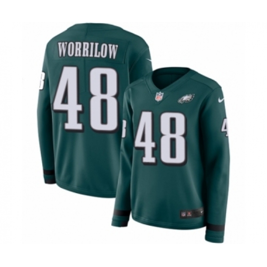 >Women's Nike Philadelphia Eagles #48 Paul Worrilow Limited Green Therma Long Sleeve NFL Jersey