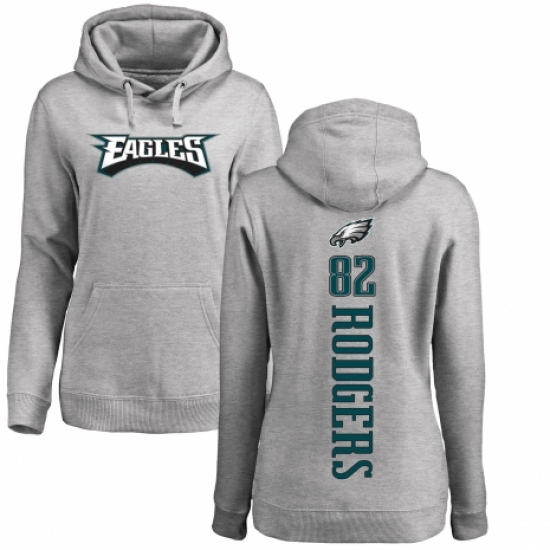>Women's Nike Philadelphia Eagles #82 Richard Rodgers Ash Backer Pullover Hoodie