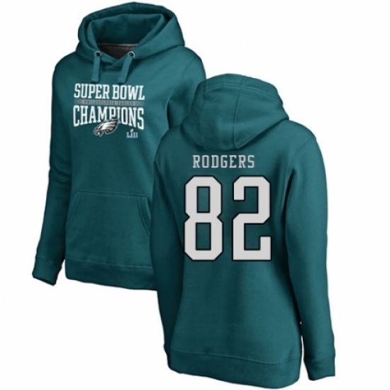 >Women's Nike Philadelphia Eagles #82 Richard Rodgers Green Super Bowl LII Champions Pullover Hoodie