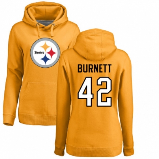 Women's Nike Pittsburgh Steelers #42 Morgan Burnett Gold Name & Number Logo Pullover Hoodie