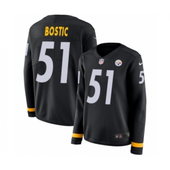 >Women's Nike Pittsburgh Steelers #51 Jon Bostic Limited Black Therma Long Sleeve NFL Jersey
