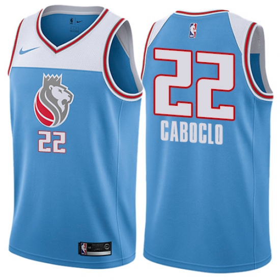 Home>NBA>Sacramento Kings>Bruno Caboclo>Women's Nike Sacramento Kings #22 Bruno Caboclo Swingman Blue NBA Jersey - City Edition