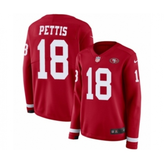 >Women's Nike San Francisco 49ers #18 Dante Pettis Limited Red Therma Long Sleeve NFL Jersey