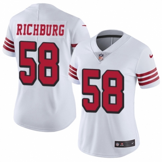 >Women's Nike San Francisco 49ers #58 Weston Richburg Limited White Rush Vapor Untouchable NFL Jersey