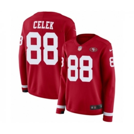 >Women's Nike San Francisco 49ers #88 Garrett Celek Limited Red Therma Long Sleeve NFL Jersey