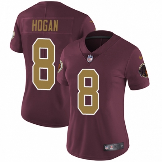 >Women's Nike Washington Redskins #8 Kevin Hogan Burgundy Red/Gold Number Alternate 80TH Anniversary Vapor Untouchable Elite Player NFL Jersey