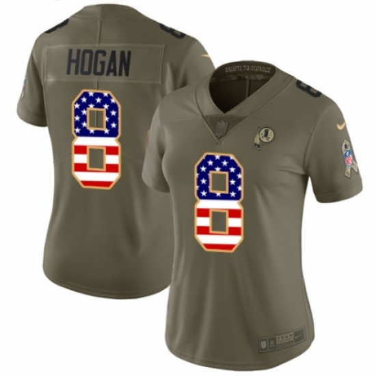 >Women's Nike Washington Redskins #8 Kevin Hogan Limited Olive/USA Flag 2017 Salute to Service NFL Jersey