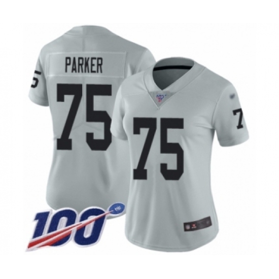 >Women's Oakland Raiders #75 Brandon Parker Limited Silver Inverted Legend 100th Season Football Jersey