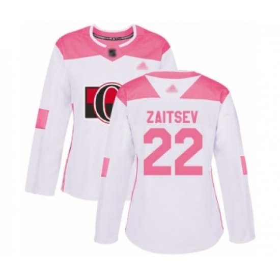 Women's Ottawa Senators #22 Nikita Zaitsev Authentic White Pink Fashion Hockey Jersey