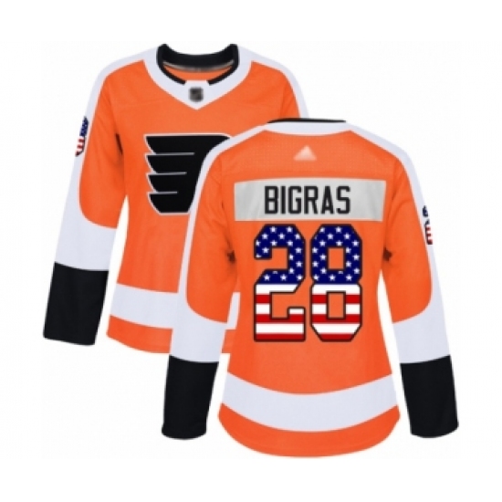 Women's Philadelphia Flyers #28 Chris Bigras Authentic Orange USA Flag Fashion Hockey Jersey