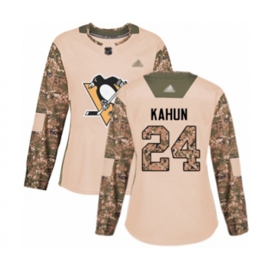 >Women's Pittsburgh Penguins #24 Dominik Kahun Authentic Camo Veterans Day Practice Hockey Jersey