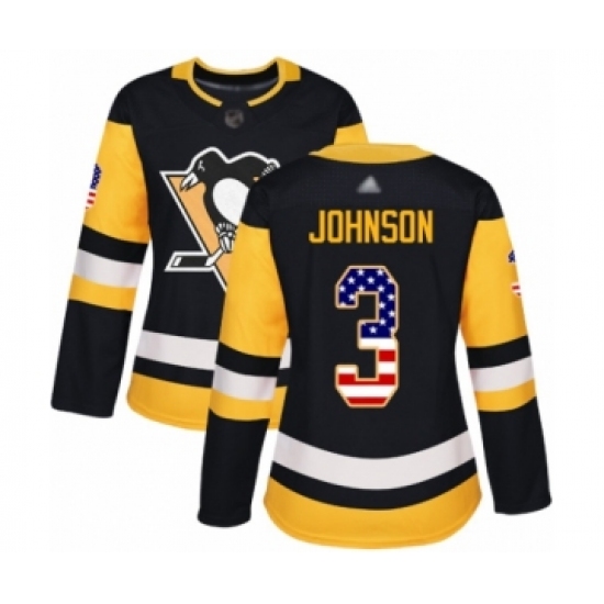 Women's Pittsburgh Penguins #3 Jack Johnson Authentic Black USA Flag Fashion Hockey Jersey