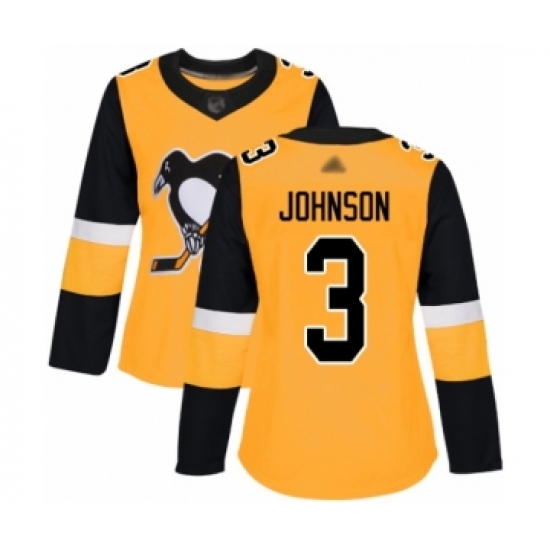 Women's Pittsburgh Penguins #3 Jack Johnson Authentic Gold Alternate Hockey Jersey