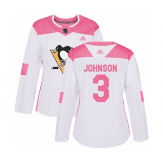 >Women's Pittsburgh Penguins #3 Jack Johnson Authentic White Pink Fashion Hockey Jersey