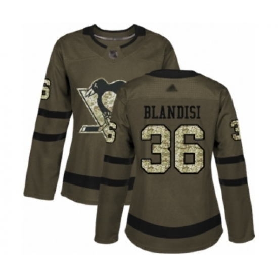 >Women's Pittsburgh Penguins #36 Joseph Blandisi Authentic Green Salute to Service Hockey Jersey