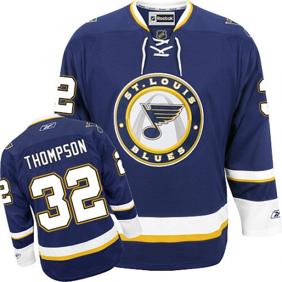 Home>NHL>St. Louis Blues>Tage Thompson>Women's Reebok St. Louis Blues #32 Tage Thompson Premier Navy Blue Third NHL Jersey