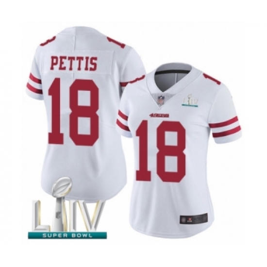 >Women's San Francisco 49ers #18 Dante Pettis White Vapor Untouchable Limited Player Super Bowl LIV Bound Football Jersey