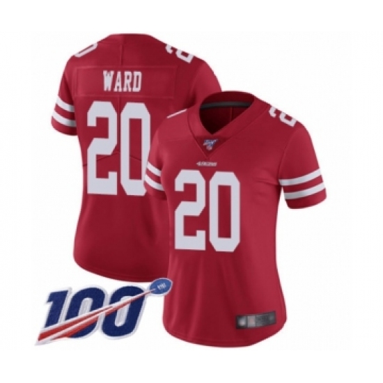 Women's San Francisco 49ers #20 Jimmie Ward Red Team Color Vapor Untouchable Limited Player 100th Season Football Jersey
