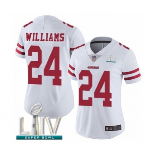 >Women's San Francisco 49ers #24 K'Waun Williams White Vapor Untouchable Limited Player Super Bowl LIV Bound Football Jersey