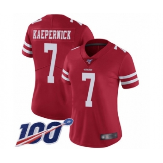 >Women's San Francisco 49ers #7 Colin Kaepernick Red Team Color Vapor Untouchable Limited Player 100th Season Football Jersey