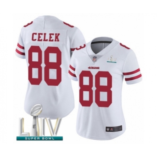 >Women's San Francisco 49ers #88 Garrett Celek White Vapor Untouchable Limited Player Super Bowl LIV Bound Football Jersey