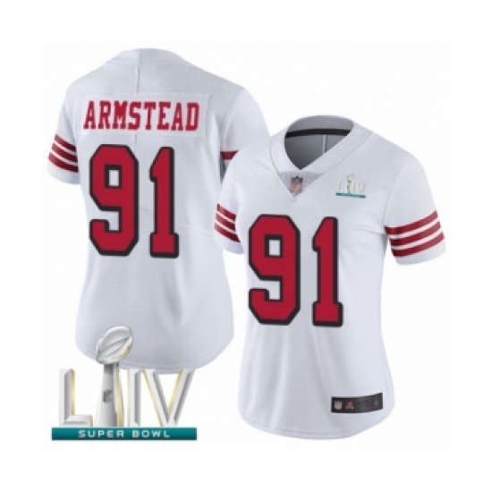 >Women's San Francisco 49ers #91 Arik Armstead Limited White Rush Vapor Untouchable Super Bowl LIV Bound Football Jersey
