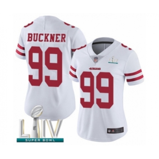 >Women's San Francisco 49ers #99 DeForest Buckner White Vapor Untouchable Limited Player Super Bowl LIV Bound Football Jersey