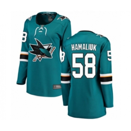 >Women's San Jose Sharks #58 Dillon Hamaliuk Fanatics Branded Teal Green Home Breakaway Hockey Jersey