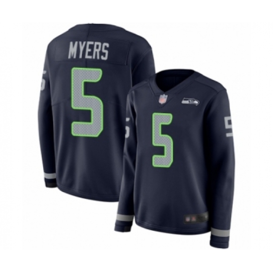 >Women's Seattle Seahawks #5 Jason Myers Limited Navy Blue Therma Long Sleeve Football Jersey
