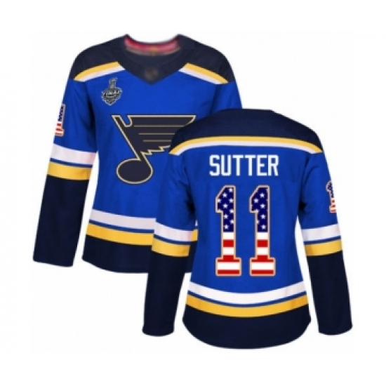 >Women's St. Louis Blues #11 Brian Sutter Authentic Blue USA Flag Fashion 2019 Stanley Cup Final Bound Hockey Jersey