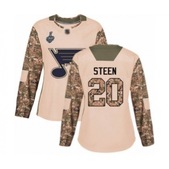 Women's St. Louis Blues #20 Alexander Steen Authentic Camo Veterans Day Practice 2019 Stanley Cup Final Bound Hockey Jersey