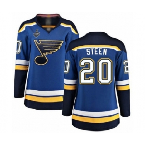 >Women's St. Louis Blues #20 Alexander Steen Fanatics Branded Royal Blue Home Breakaway 2019 Stanley Cup Final Bound Hockey Jersey