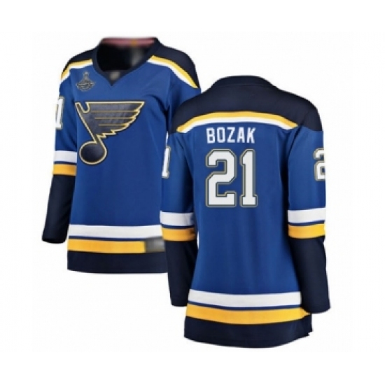 Women's St. Louis Blues #21 Tyler Bozak Fanatics Branded Royal Blue Home Breakaway 2019 Stanley Cup Champions Hockey Jersey