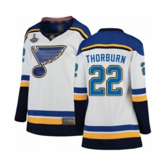 Women's St. Louis Blues #22 Chris Thorburn Fanatics Branded White Away Breakaway 2019 Stanley Cup Champions Hockey Jersey