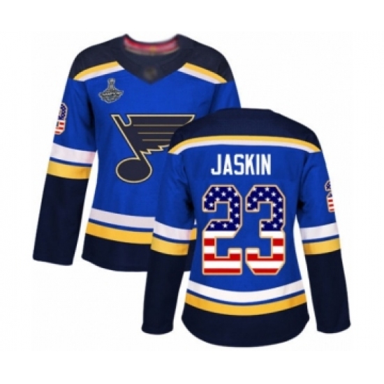 Women's St. Louis Blues #23 Dmitrij Jaskin Authentic Blue USA Flag Fashion 2019 Stanley Cup Champions Hockey Jersey