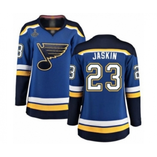 >Women's St. Louis Blues #23 Dmitrij Jaskin Fanatics Branded Royal Blue Home Breakaway 2019 Stanley Cup Champions Hockey Jersey