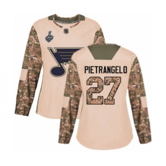 Women's St. Louis Blues #27 Alex Pietrangelo Authentic Camo Veterans Day Practice 2019 Stanley Cup Final Bound Hockey Jersey