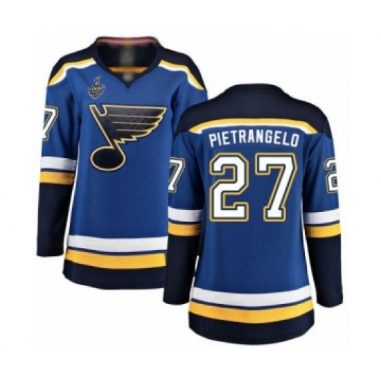 >Women's St. Louis Blues #27 Alex Pietrangelo Fanatics Branded Royal Blue Home Breakaway 2019 Stanley Cup Final Bound Hockey Jersey