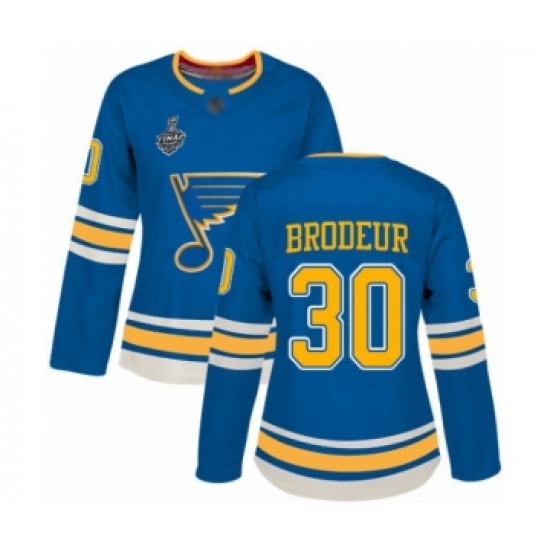 Women's St. Louis Blues #30 Martin Brodeur Authentic Navy Blue Alternate 2019 Stanley Cup Final Bound Hockey Jersey