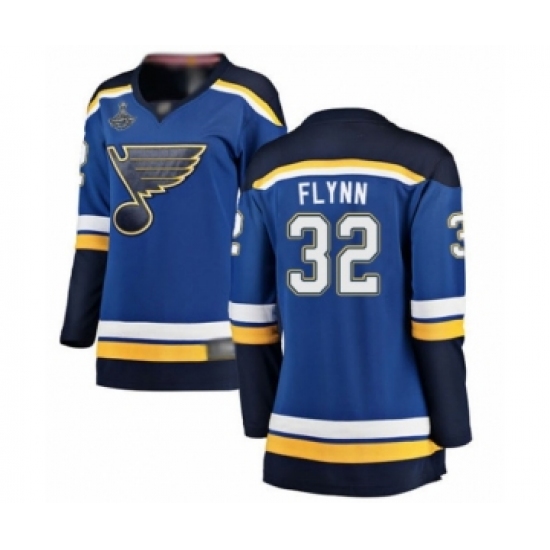>Women's St. Louis Blues #32 Brian Flynn Fanatics Branded Royal Blue Home Breakaway 2019 Stanley Cup Champions Hockey Jersey