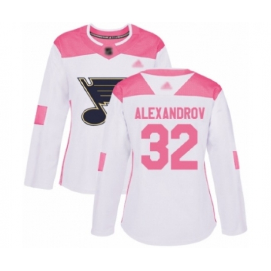 Women's St. Louis Blues #32 Nikita Alexandrov Authentic White Pink Fashion Hockey Jersey