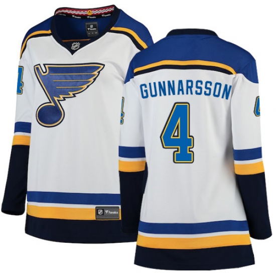 Women's St. Louis Blues #4 Carl Gunnarsson Fanatics Branded White Away Breakaway NHL Jersey
