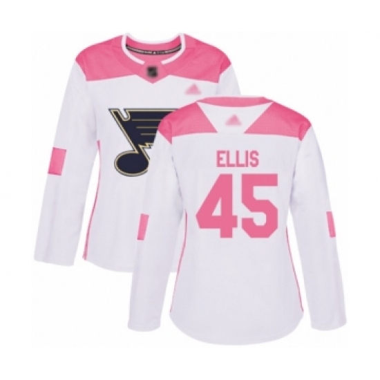 >Women's St. Louis Blues #45 Colten Ellis Authentic White Pink Fashion Hockey Jersey