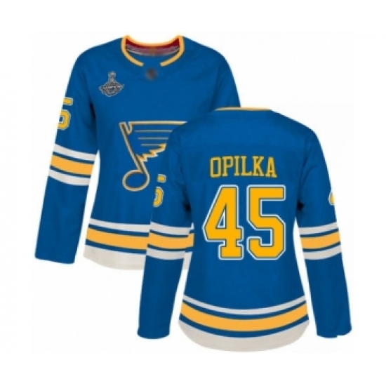 Women's St. Louis Blues #45 Luke Opilka Authentic Royal Blue Home 2019 Stanley Cup Champions Hockey Jersey