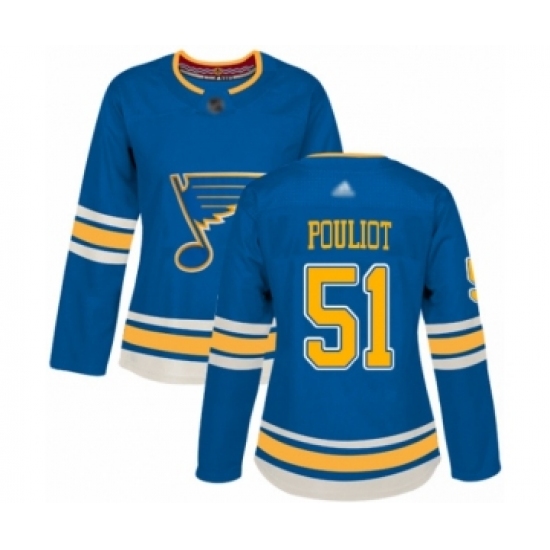 >Women's St. Louis Blues #51 Derrick Pouliot Authentic Navy Blue Alternate Hockey Jersey
